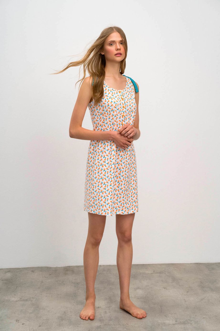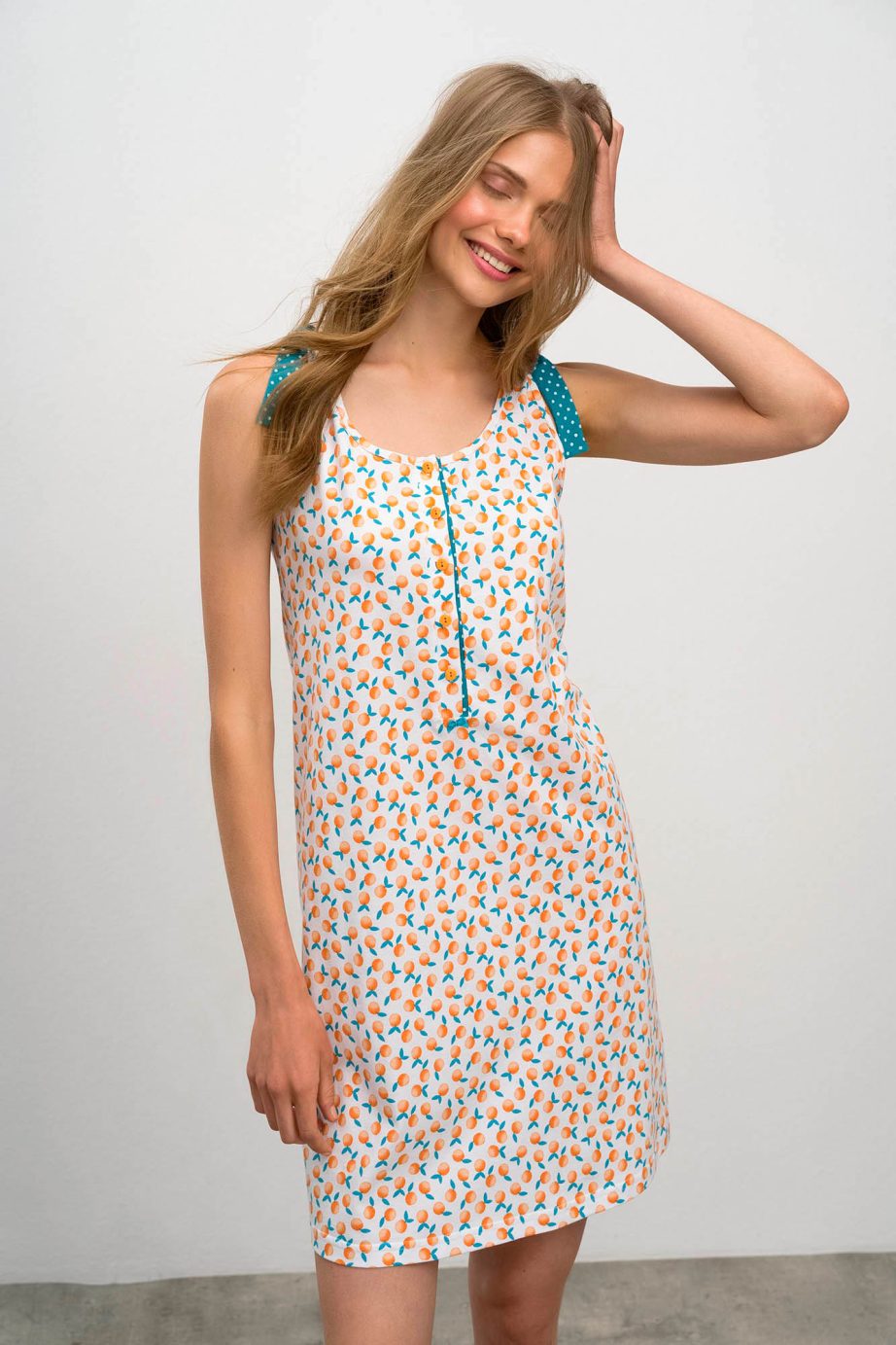 - Нощница с щампа ,копчета и детайл на раменете.
