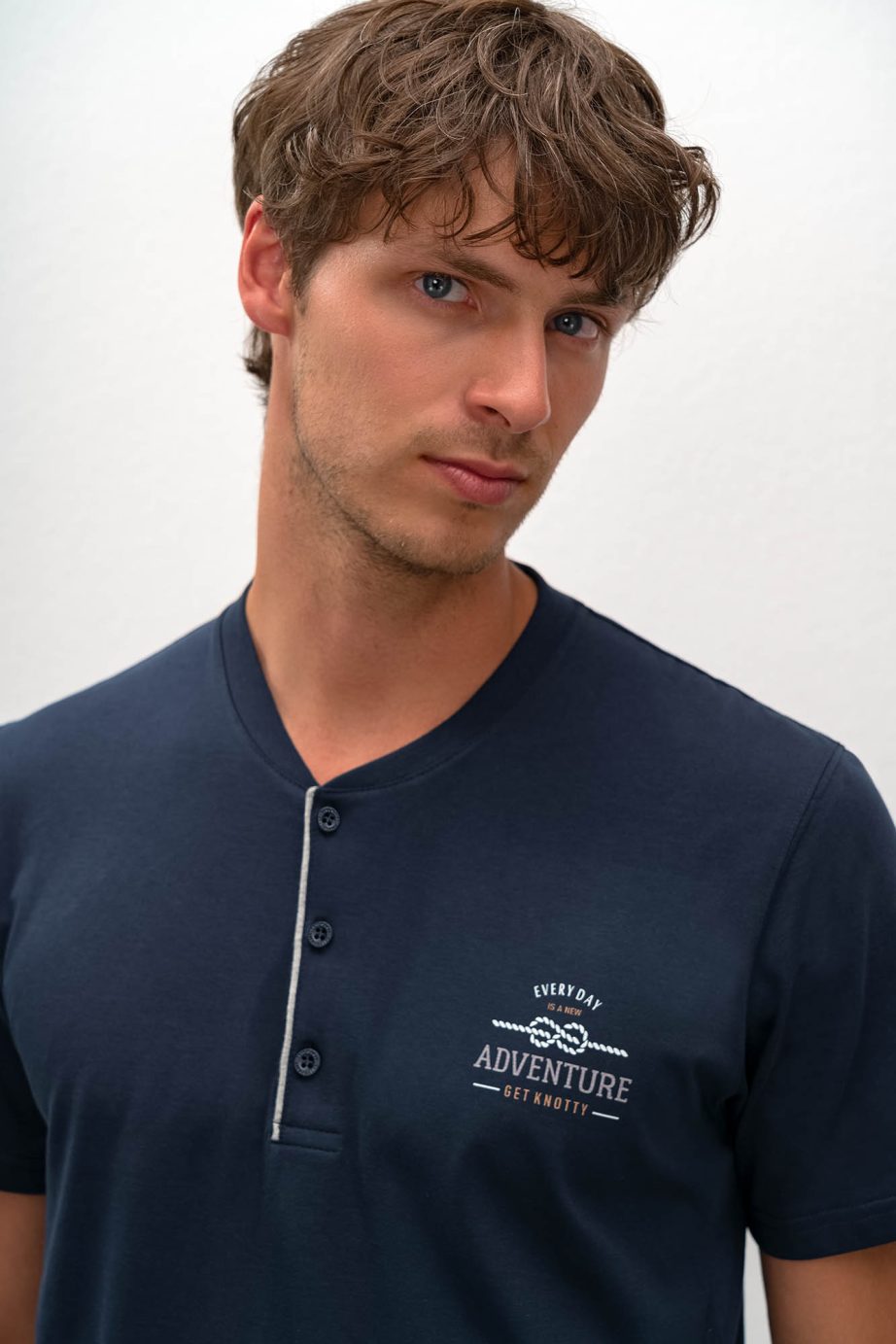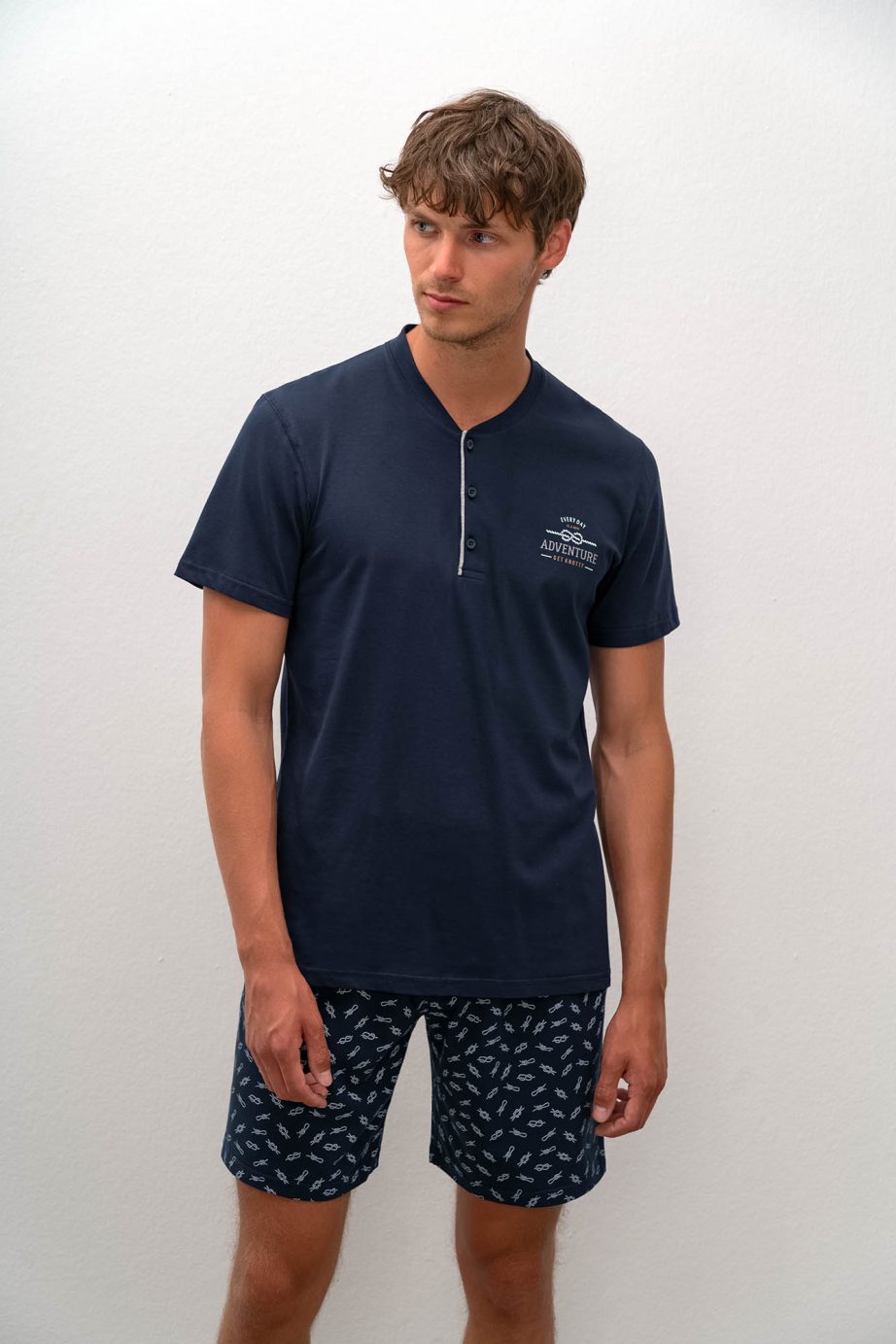 • Пижама с къс ръкав и копчета, къси панталони с щампа.