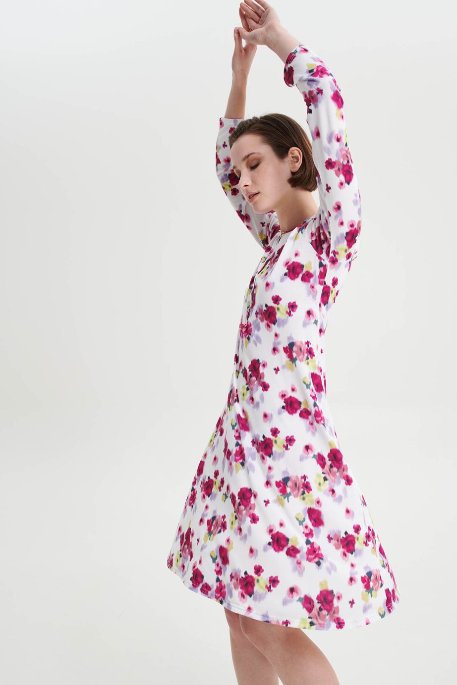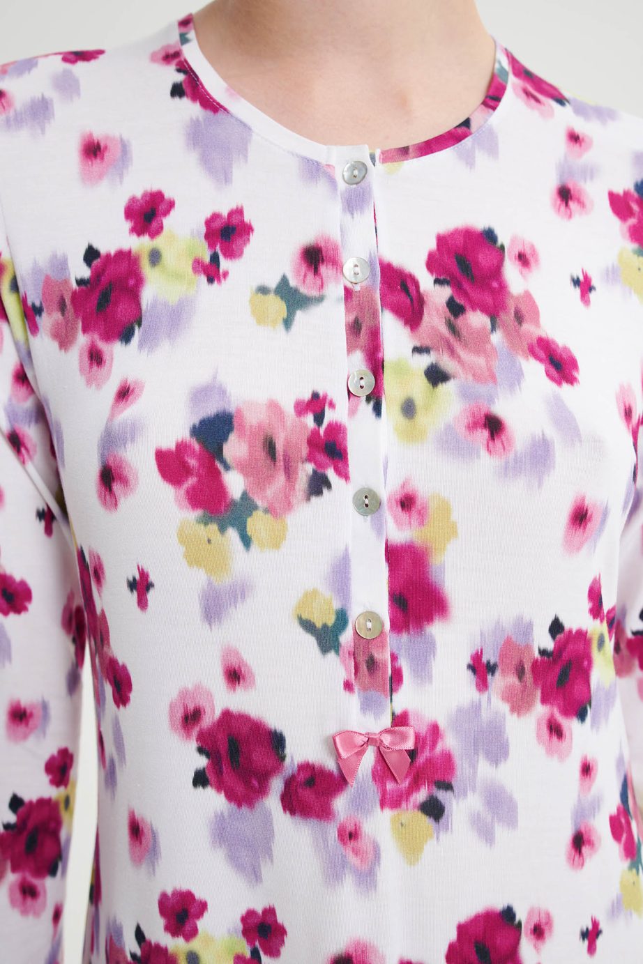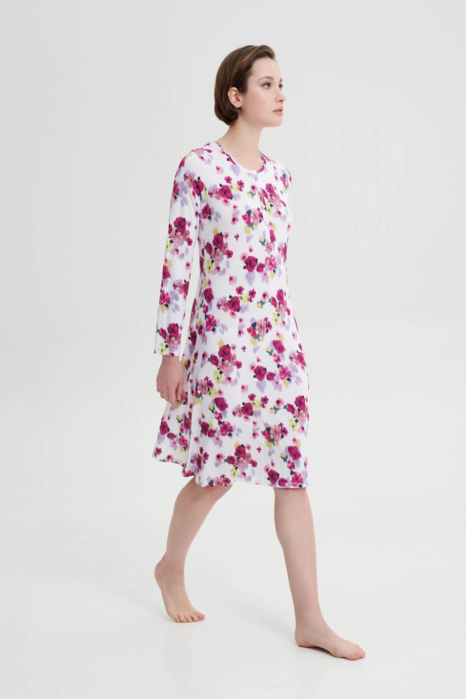 Клорална нощница с копчета и дълги ръкави. Неподвластна на времето флорална щампа, изработена от мека на допир материя, която ще ползвате през деня.