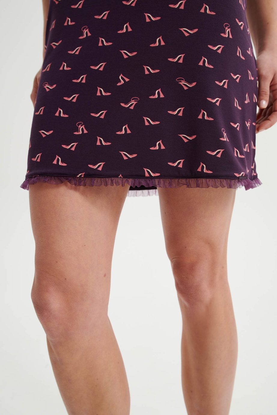 Най-дълбоко, кръгло деколте и презрамки тип “спагети” в удобна кройка. Приятно предложение, което ще придаде комфорт и стил на времето, прекарано у дома.