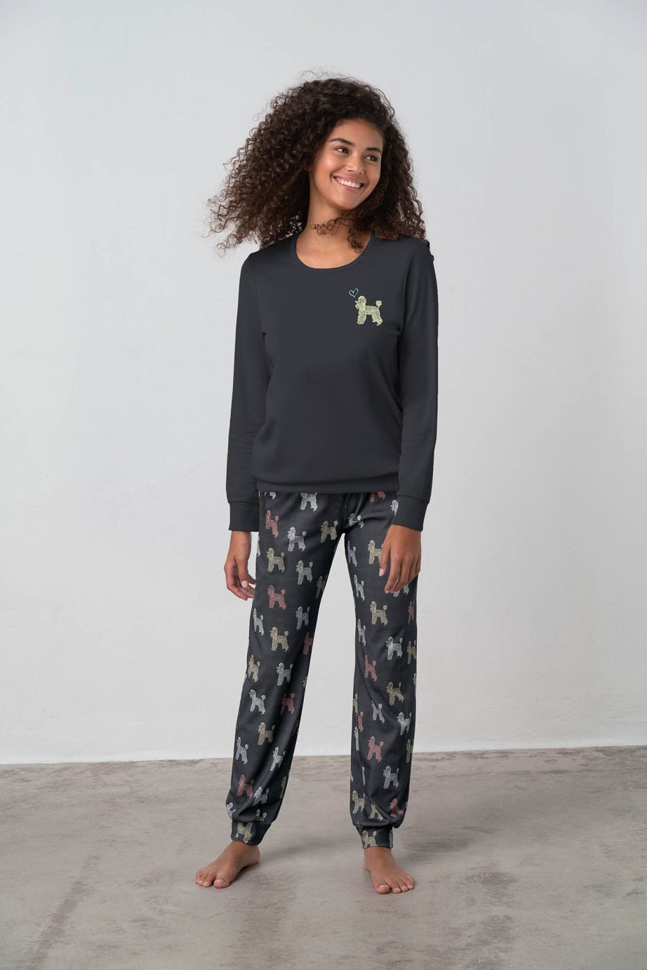 Дамска пижама с кръгло деколте и дълги маншети. Удобно предложение, на което ще се наслаждавате през студените зимни дни.