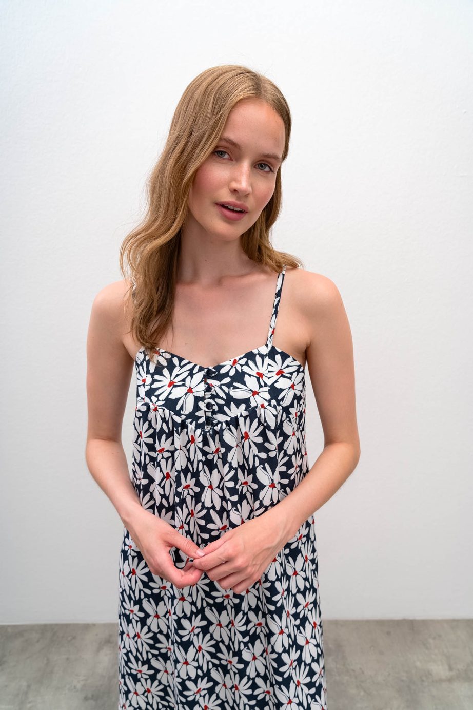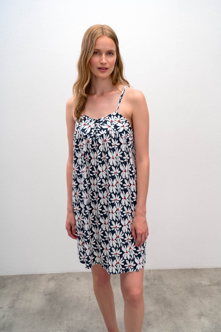 - Нощница с щампа на цветя и презрамки.Шарен дизайн,който придава усещане за пролет и лято заедно.
