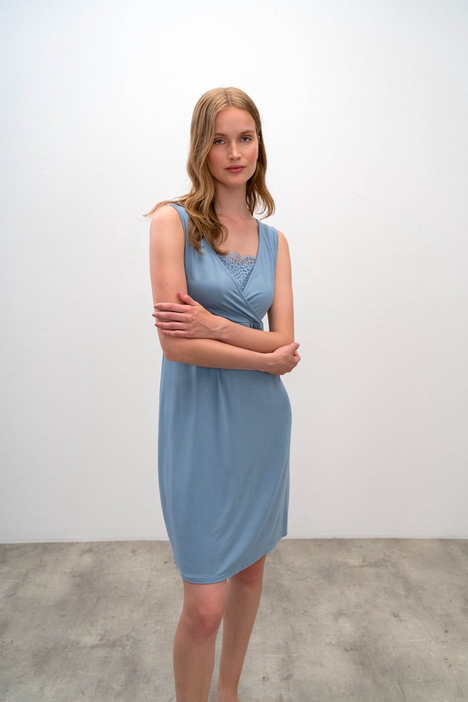 - Нощница без ръкави с красива дантела отпред. Идеална е за кърмене. Дантелата, която е основен детайл на тази нощница, придава усещане за висок лукс.