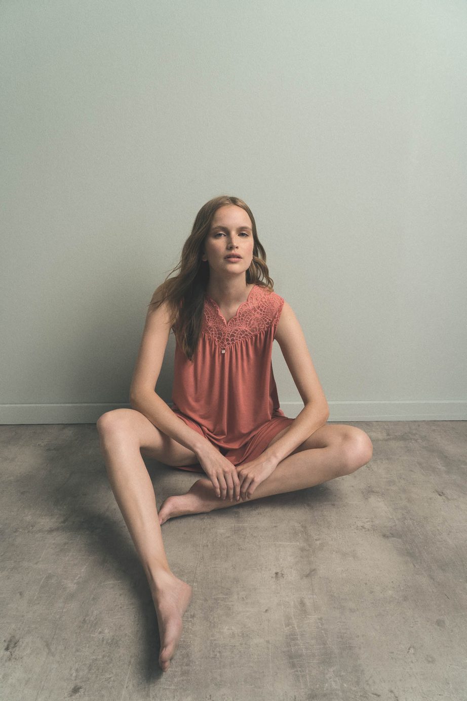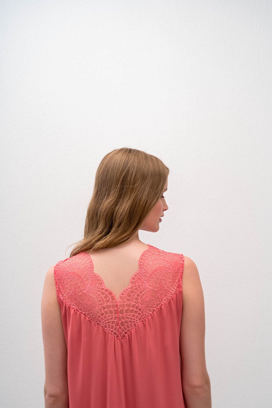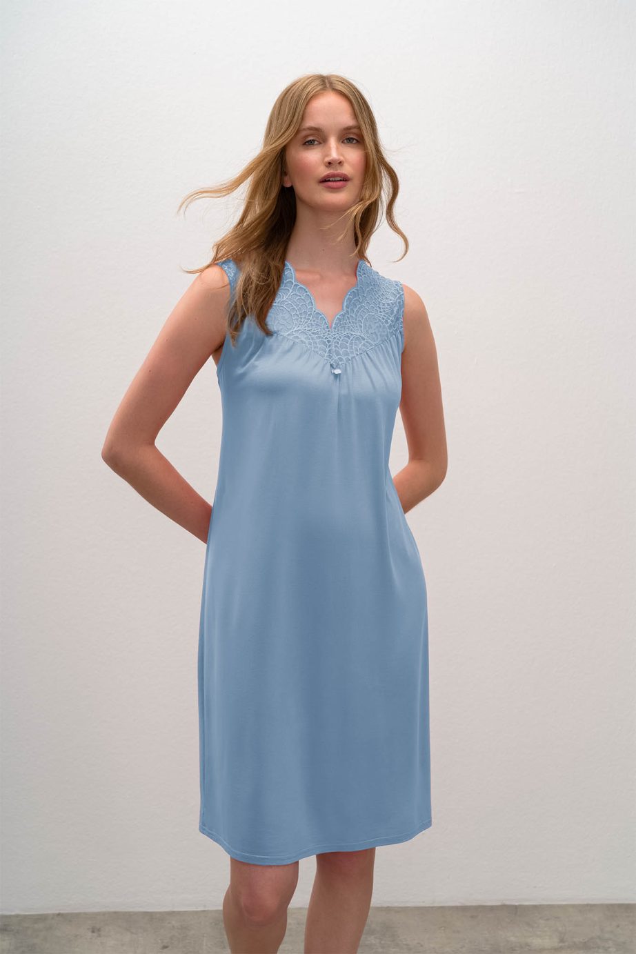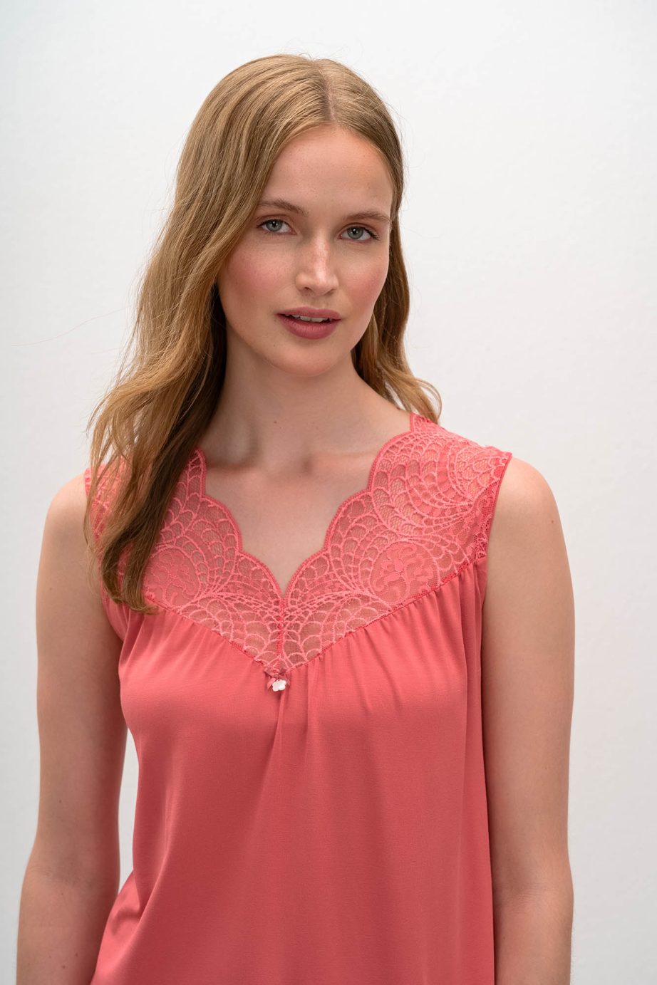 - Нощница без ръкави с красива дантела отпред и отзад с много комфортно прилягане. Дантелата, която е основен детайл на тази нощница, придава усещане за висок лукс.