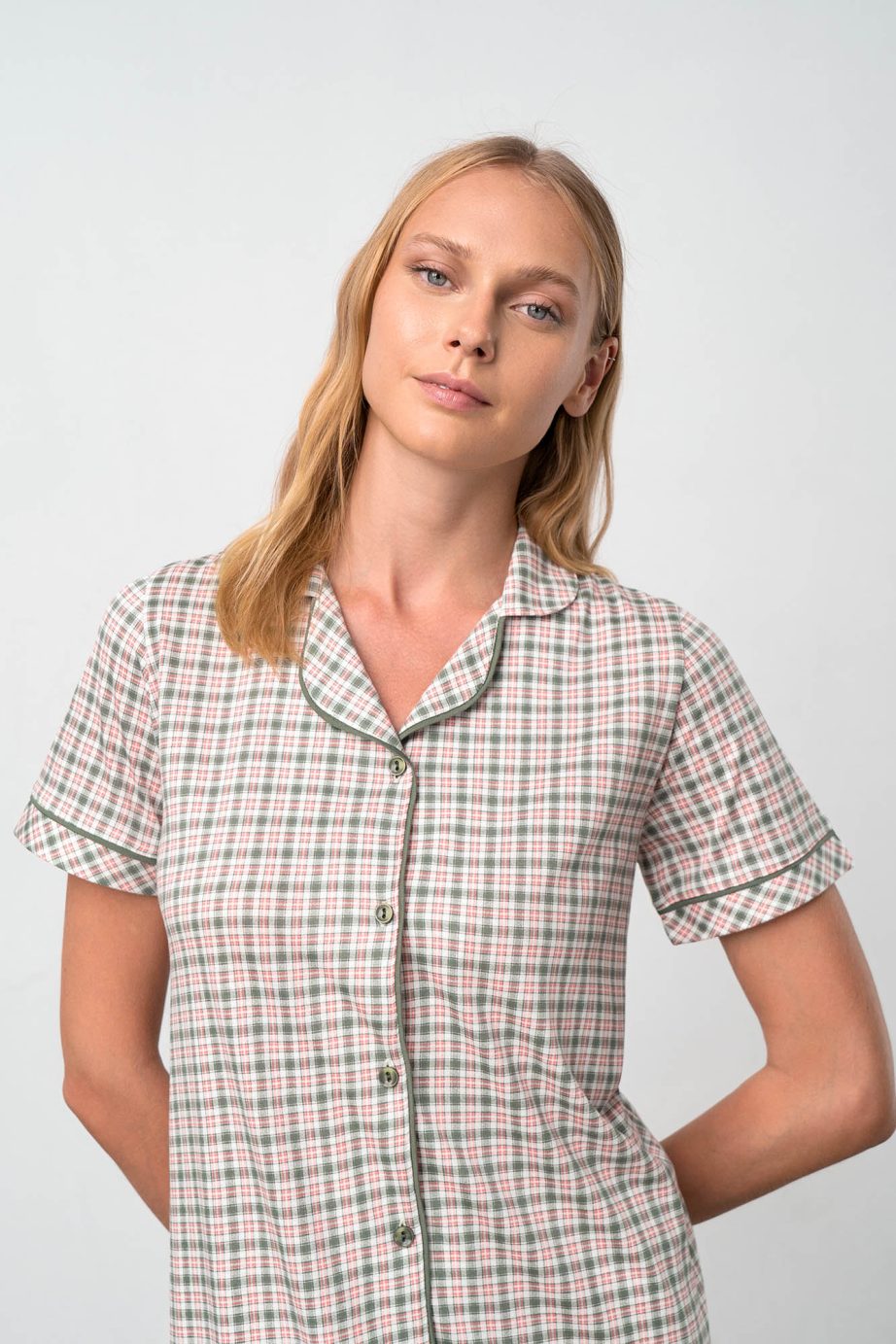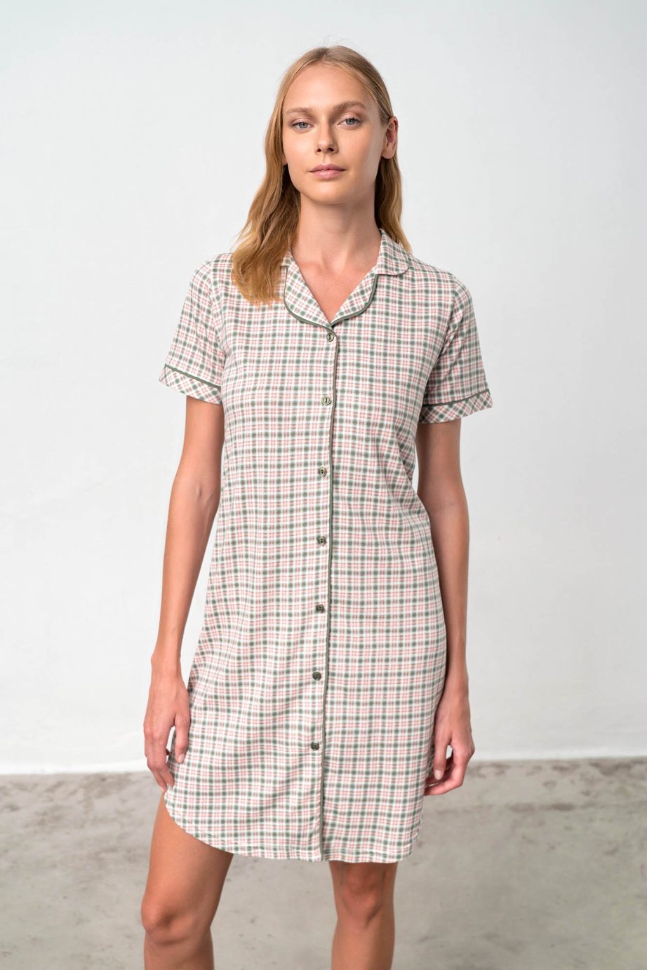 Нощна риза с копчета и къс ръкав в свободна кройка, чудесна за кърмене. Приятно предложение, на което ще се наслаждавате през целия ден.