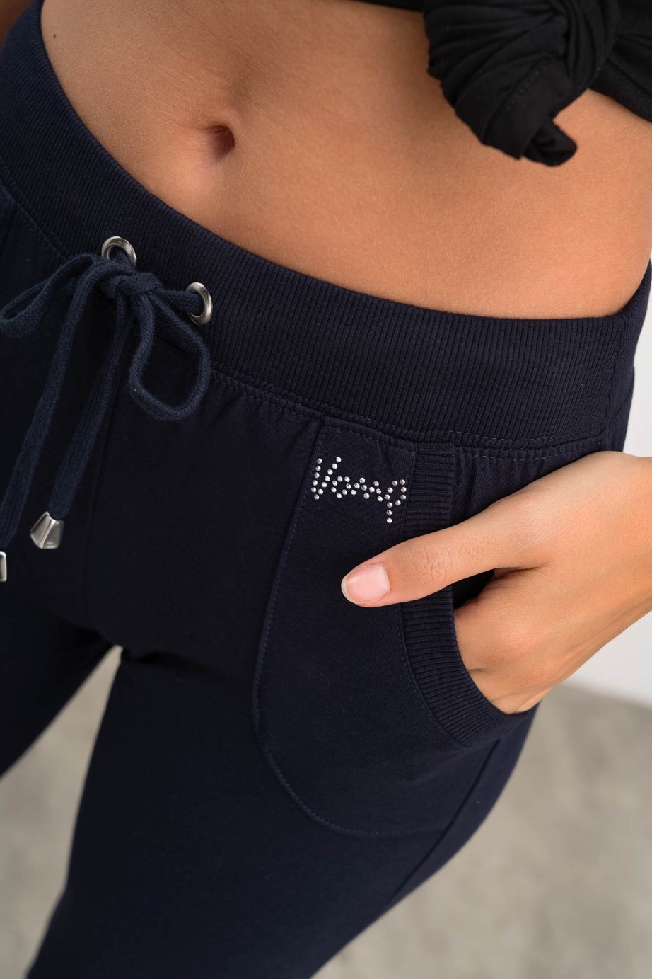 Платинен дамски панталон с широк ластик на талията и странични джобове . Готино предложение за разходка или фитнес зала.