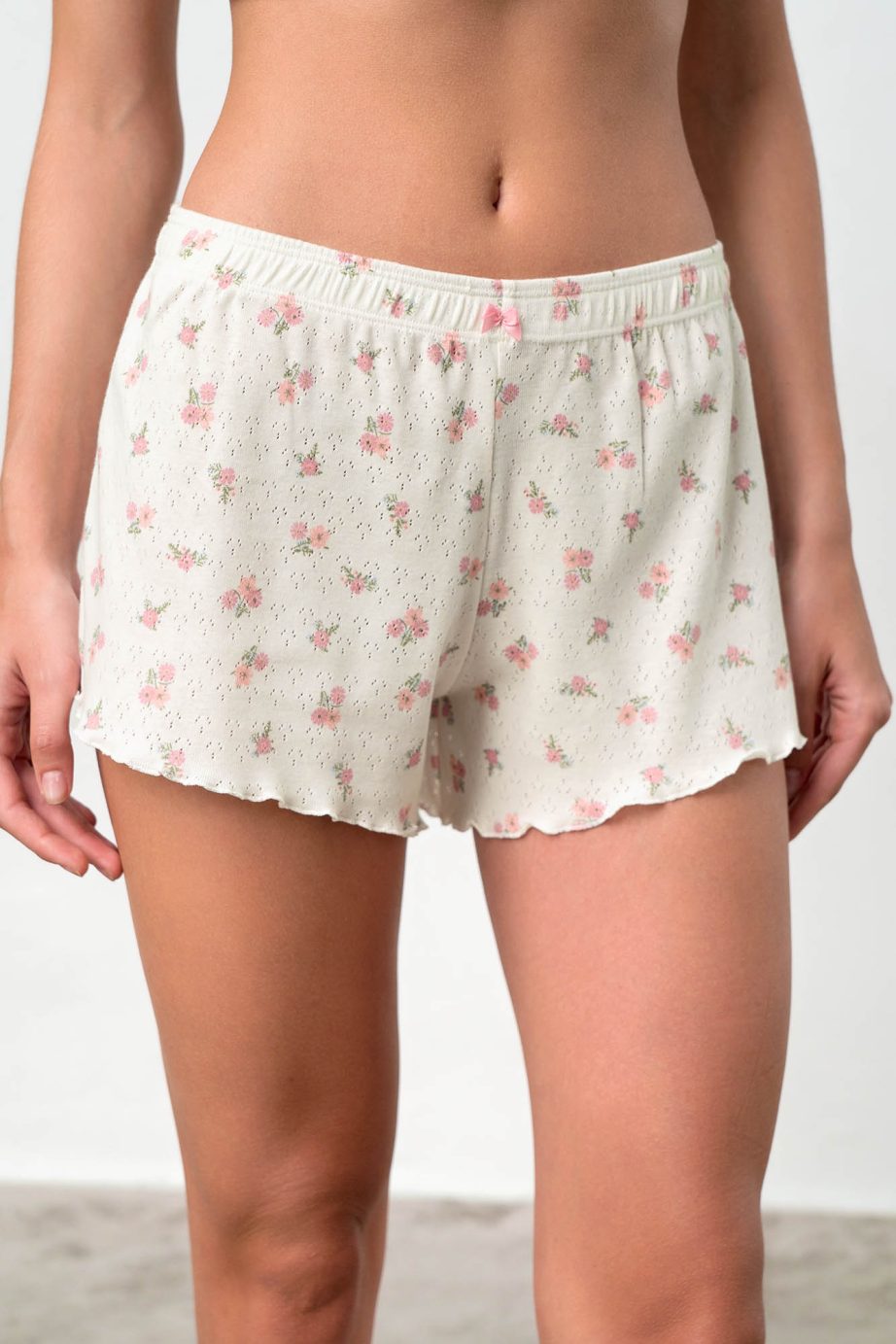 • Дървени къси панталони за жени с удобен ластик на талията, изработени от прохладен памук. Идеални са за цял ден и нощ. Съчетайте я със същите продукти от семейството.