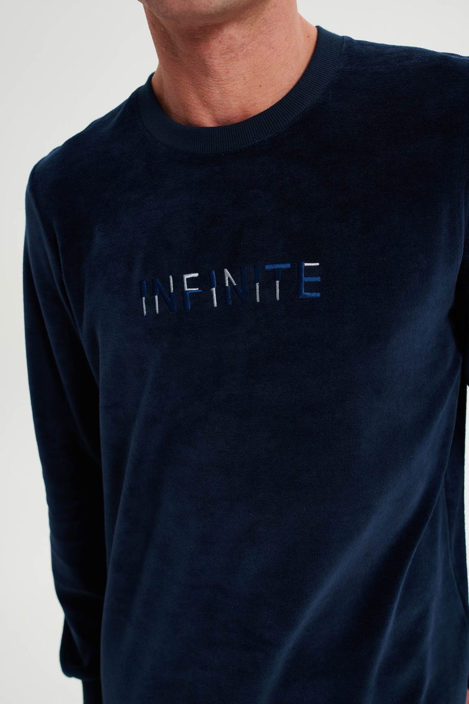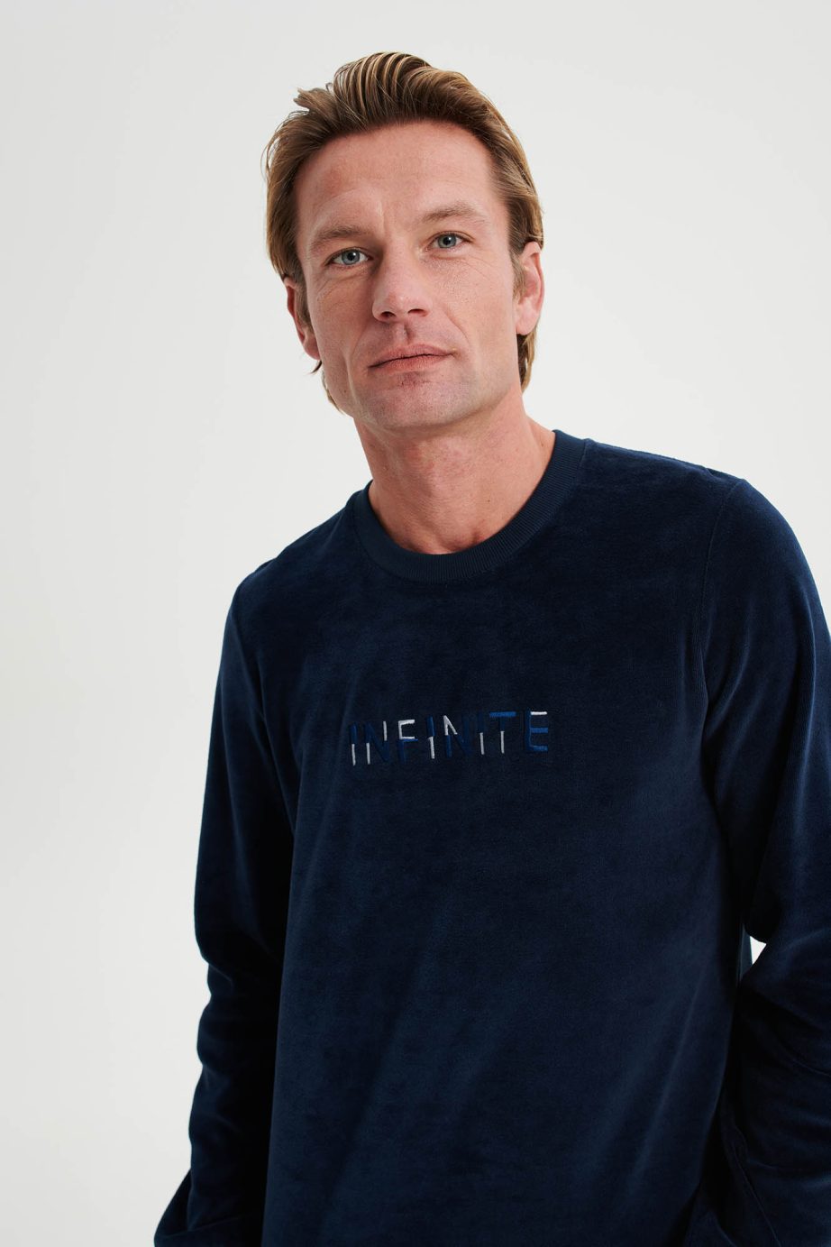 Планинска мъжка пижама с кръгло деколте, панталон с маншети и горнище с маншети. Удобно предложение от кадифена материя на допир за студените зимни дни.